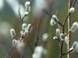 One of the early signs of spring that I enjoyed watching come into bloom is the pussy willows. As a young child I remember a huge pussy willow bush on the left side of the enterance of my grandparent's (that would be my mother's parents) apartment. I would get excited walking up the long sidewalk to the main door and looking over and seeing the pussy willows start to bud. Soon, I knew the fuzzy plant would emerge out into the sun. On another visit I would run over and take a look and see the blooming buds showing off their fuzziness. When we were done visiting it seemed to take forever for my mother and Nonnie (that is what we called our grandmother) to say goodbye. I would stand there outside picking off the buds just to feel the soft velvety texture between my fingers. Sometimes I would take my fingernail and pry apart the bud to see what was inside of it. We never had a plant like that anywhere around our home and it was so unique. At times Nonnie would see me pulling off the pussy willow's soft bulb ends and quickly tell me to quit it. She didn't want me pulling off all the ends. The bush was huge and I couldn't possibly see how I could pull them all off but I tried to obey her. But it was hard to resist.